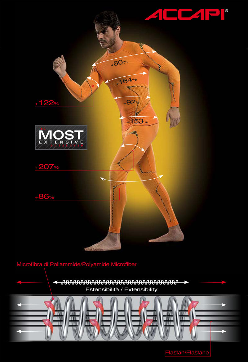 XPERIENCE: FREEDOM OF MOVEMENT: Lightweight Baselayer with outstanding elasticity incorporating Accapi's proprietary...